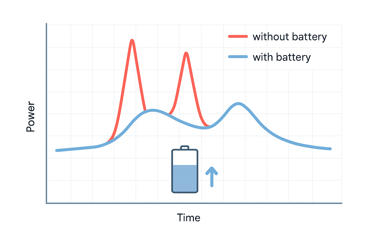 Das Problem: Hohe Stromspitzen treiben Ihre Rechnung in die Höhe. Die Lösung: Der Speicher glättet Lastspitzen und senkt Ihre Leistungskosten – oft um 20-40%.